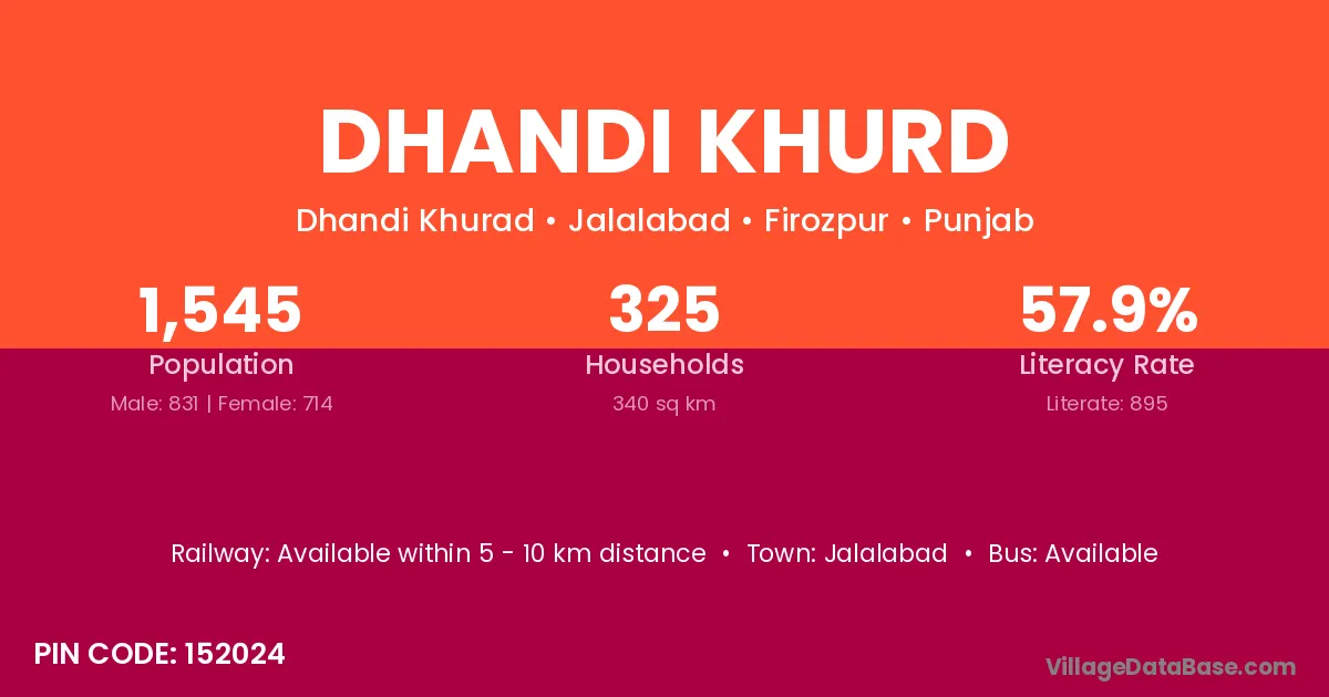 Dhandi Khurd village has a total population of 1,545 people, of which 831 are males and 714 are females.