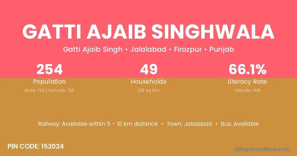 Gatti Ajaib Singhwala village has a total population of 254 people, of which 128 are males and 126 are females.