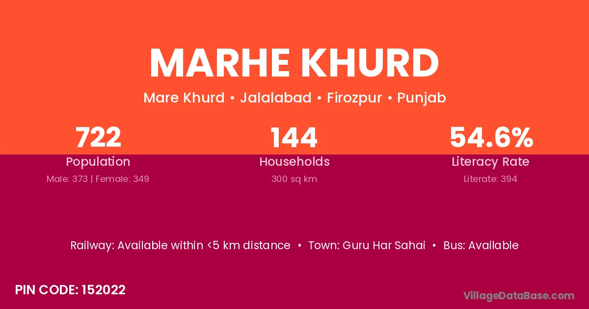 Guru Har Sahai is the nearest town to Marhe Khurd village for major economic activities