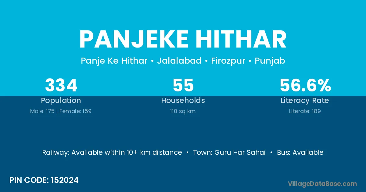 Panjeke Hithar village has a total population of 334 people, of which 175 are males and 159 are females.