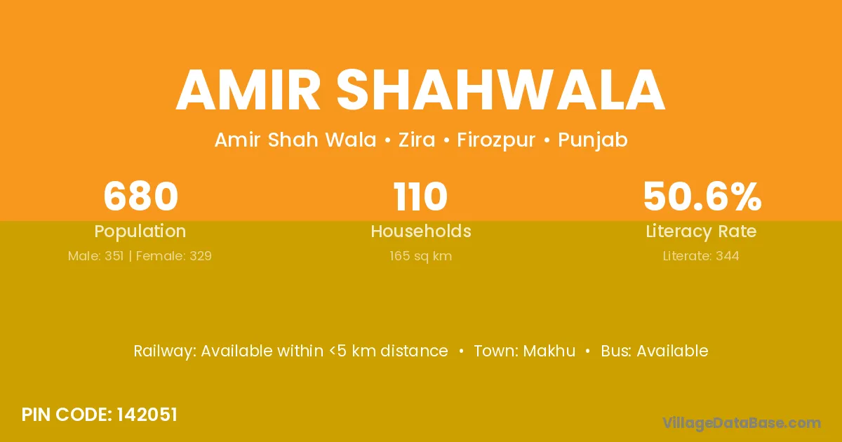 Amir Shahwala village has a total population of 680 people, of which 351 are males and 329 are females.