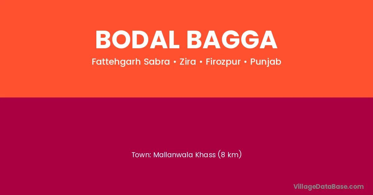 Bodal Bagga village is located in the Zira Tehsil of the Firozpur district in Punjab .