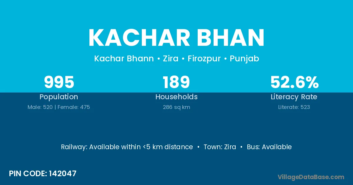 Kachar Bhan village has a total population of 995 people, of which 520 are males and 475 are females.