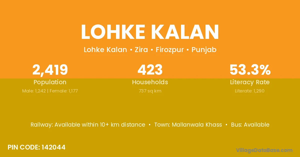 There are approximately 423 households in Lohke Kalan village.