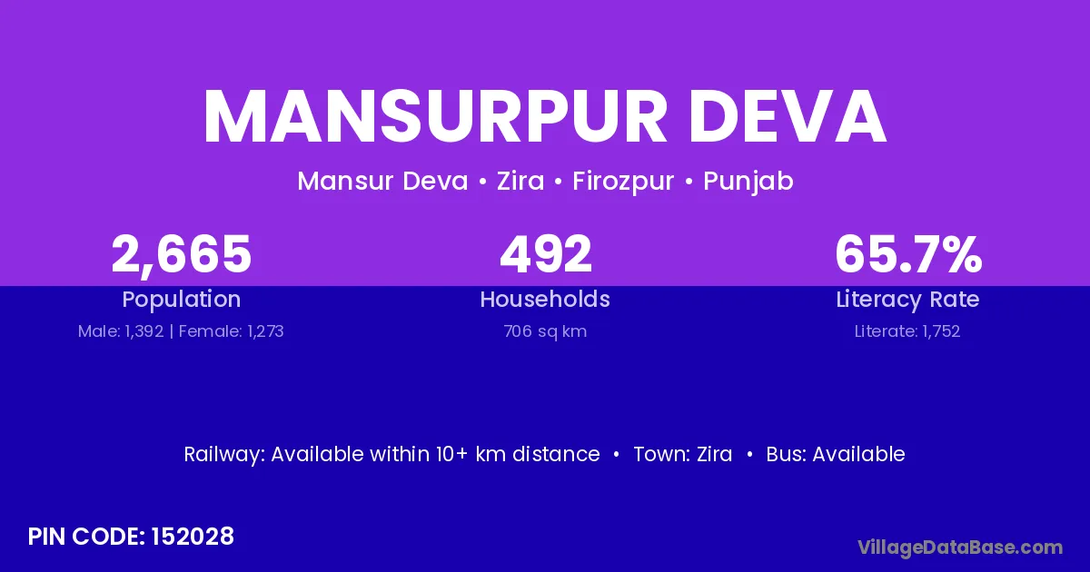 Zira is the nearest town to Mansurpur Deva village for major economic activities