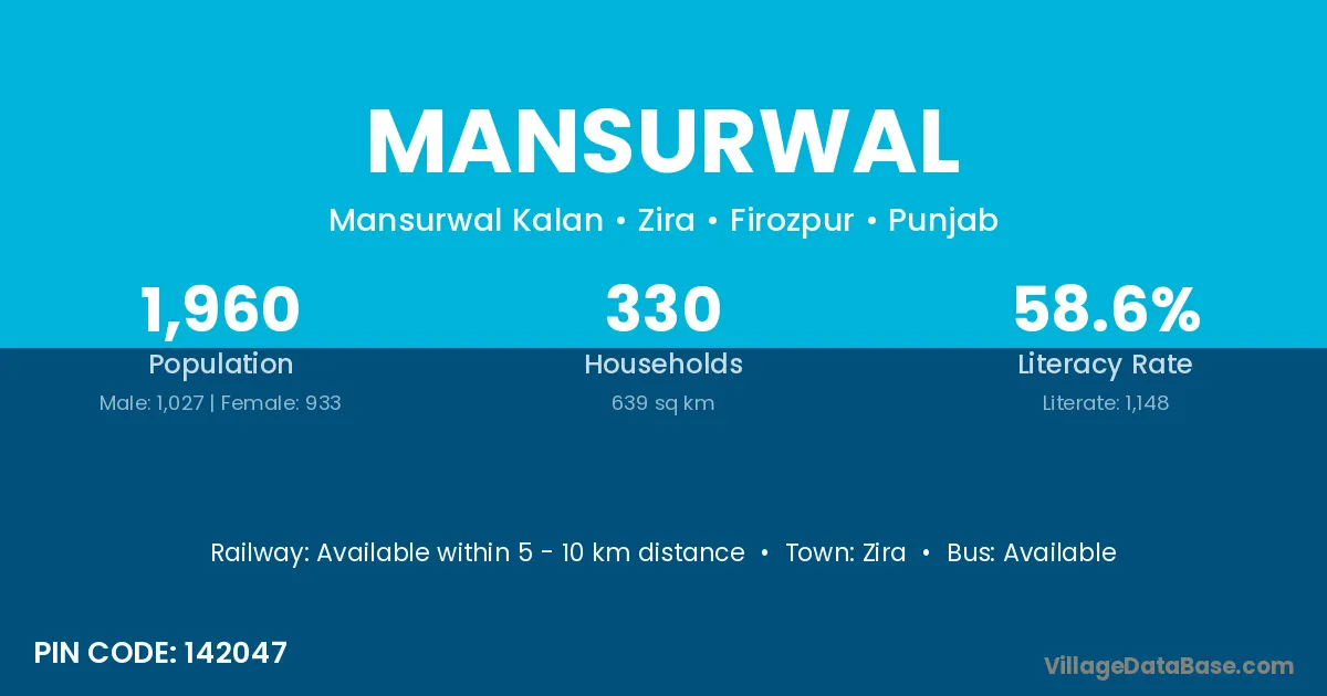 Mansurwal village has a total population of 1,960 people, of which 1,027 are males and 933 are females.