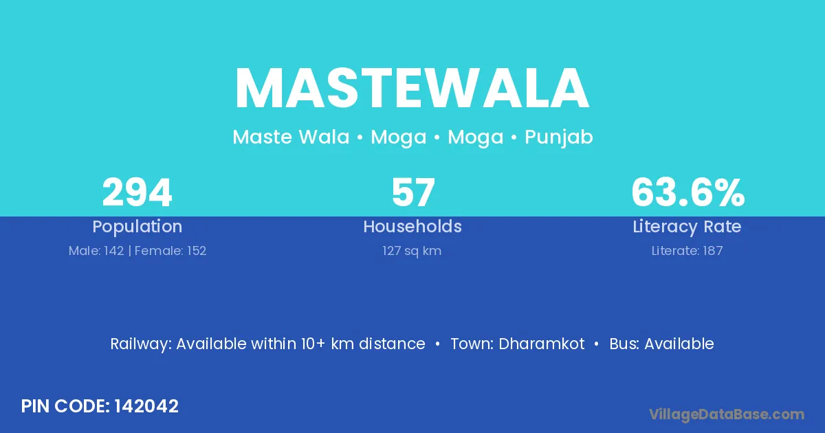 According to Census 2011 information, the village code of Mastewala village is 142044.