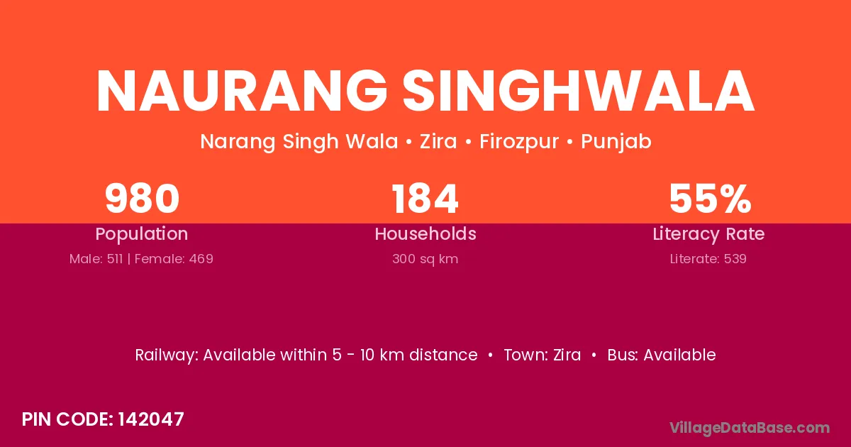 Naurang Singhwala village has a total population of 980 people, of which 511 are males and 469 are females.