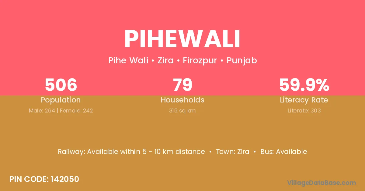 Pihewali village has a total population of 506 people, of which 264 are males and 242 are females.
