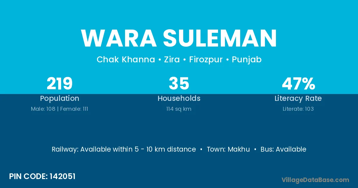 Wara Suleman village has a total population of 219 people, of which 108 are males and 111 are females.