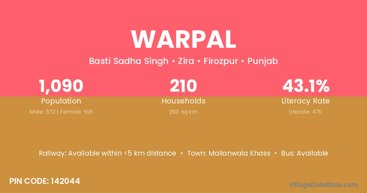 Mallanwala Khass is the nearest town to Warpal village for major economic activities