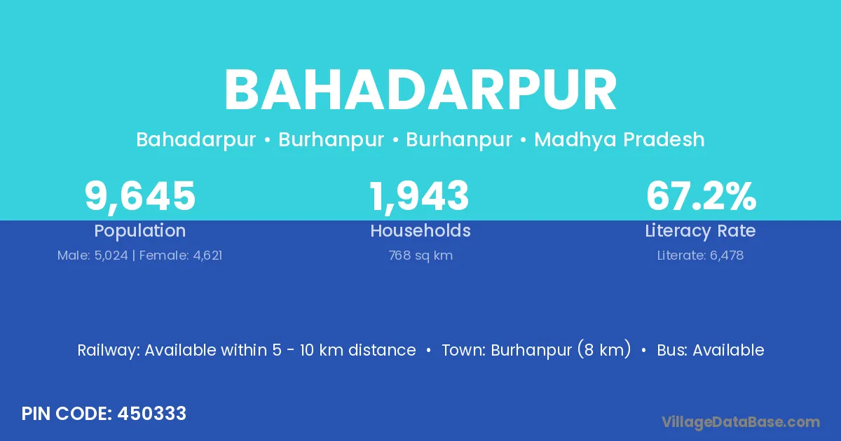 Bahadarpur village has a total population of 978 people, of which 511 are males and 467 are females.