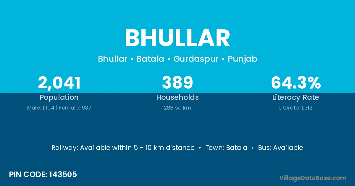 According to Census 2011 information, the village code of Bhullar village is 143505.