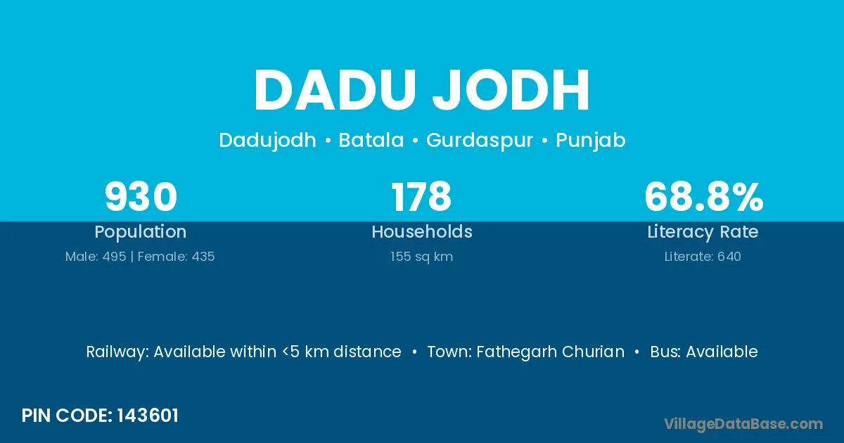 Fathegarh Churian is the nearest town to Dadu Jodh village for major economic activities