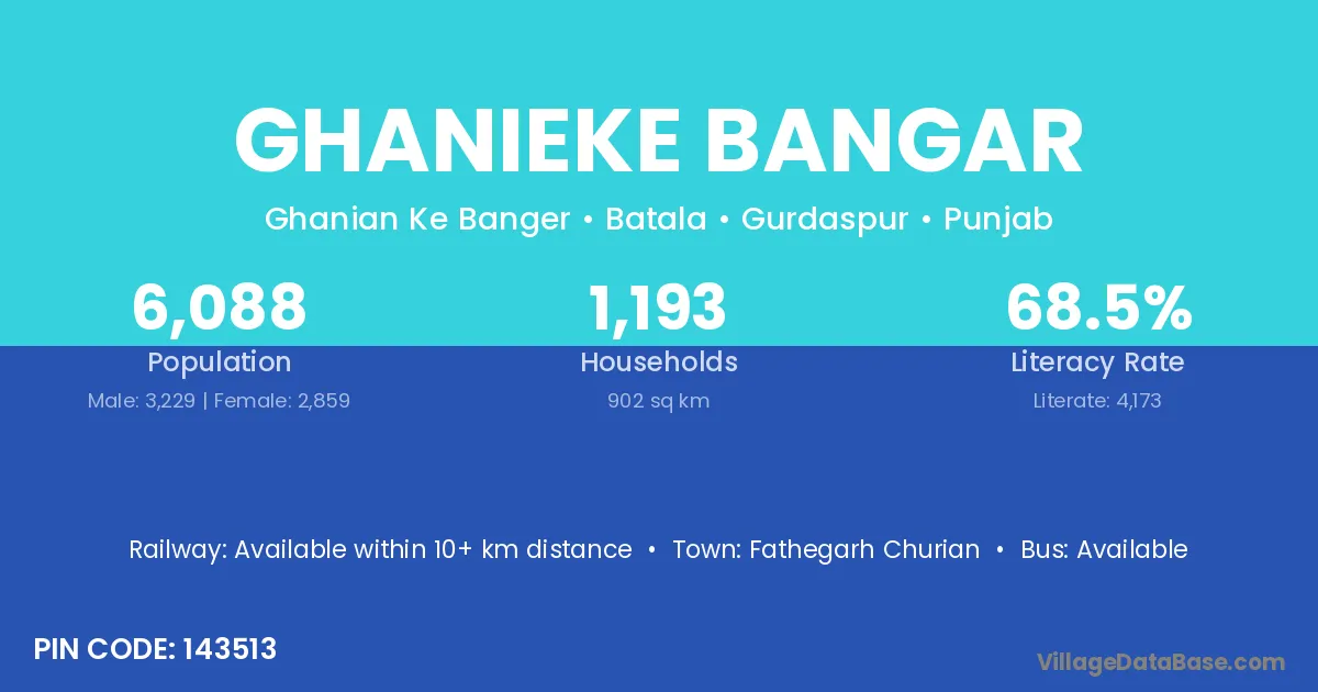 Fathegarh Churian is the nearest town to Ghanieke Bangar village for major economic activities