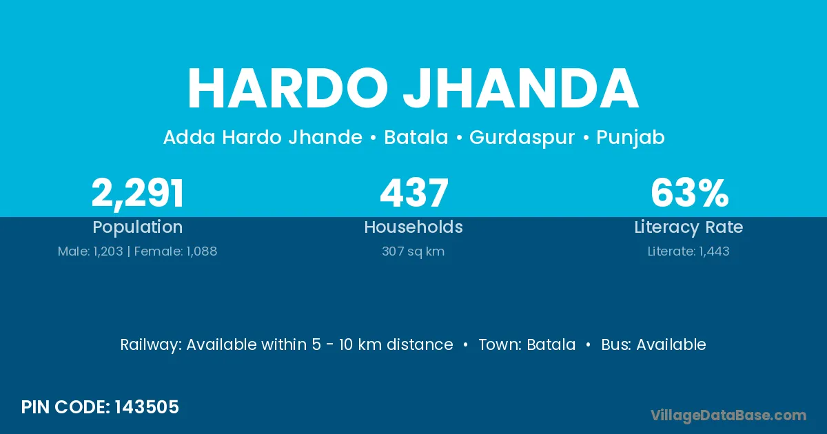 According to Census 2011 information, the village code of Hardo Jhanda village is 143505.