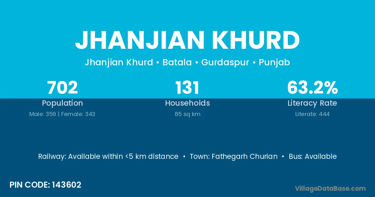 Fathegarh Churian is the nearest town to Jhanjian Khurd village for major economic activities