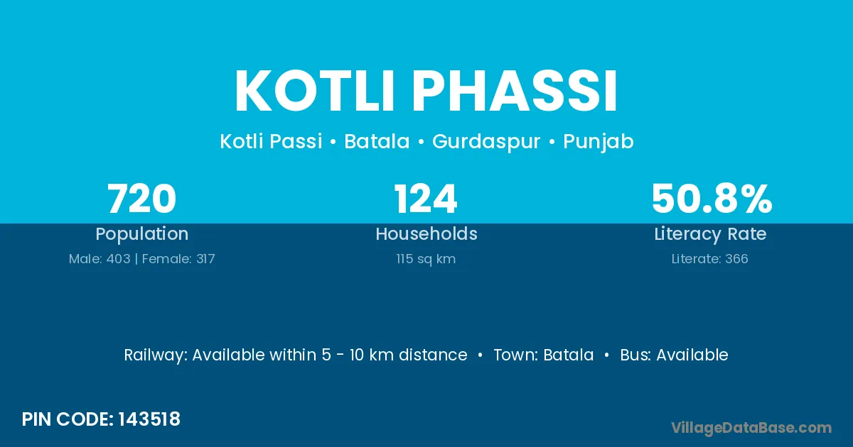Batala is the nearest town to Kotli Phassi village for major economic activities