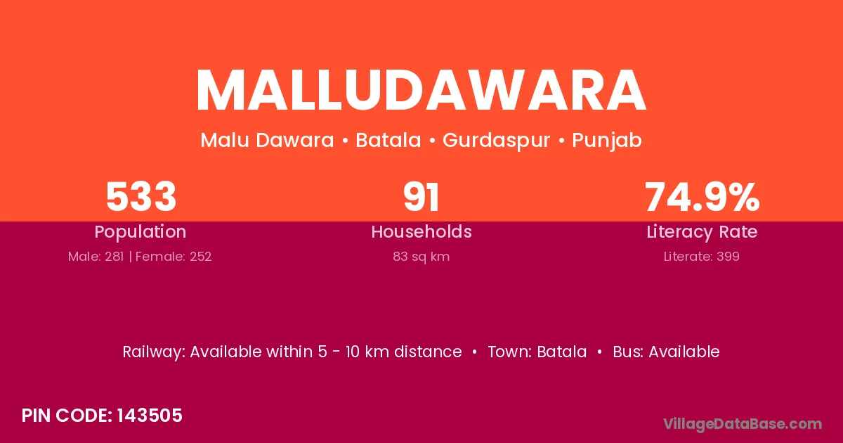 Batala is the nearest town to Malludawara village for major economic activities