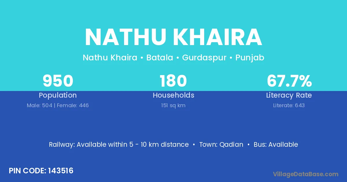 Qadian is the nearest town to Nathu Khaira village for major economic activities