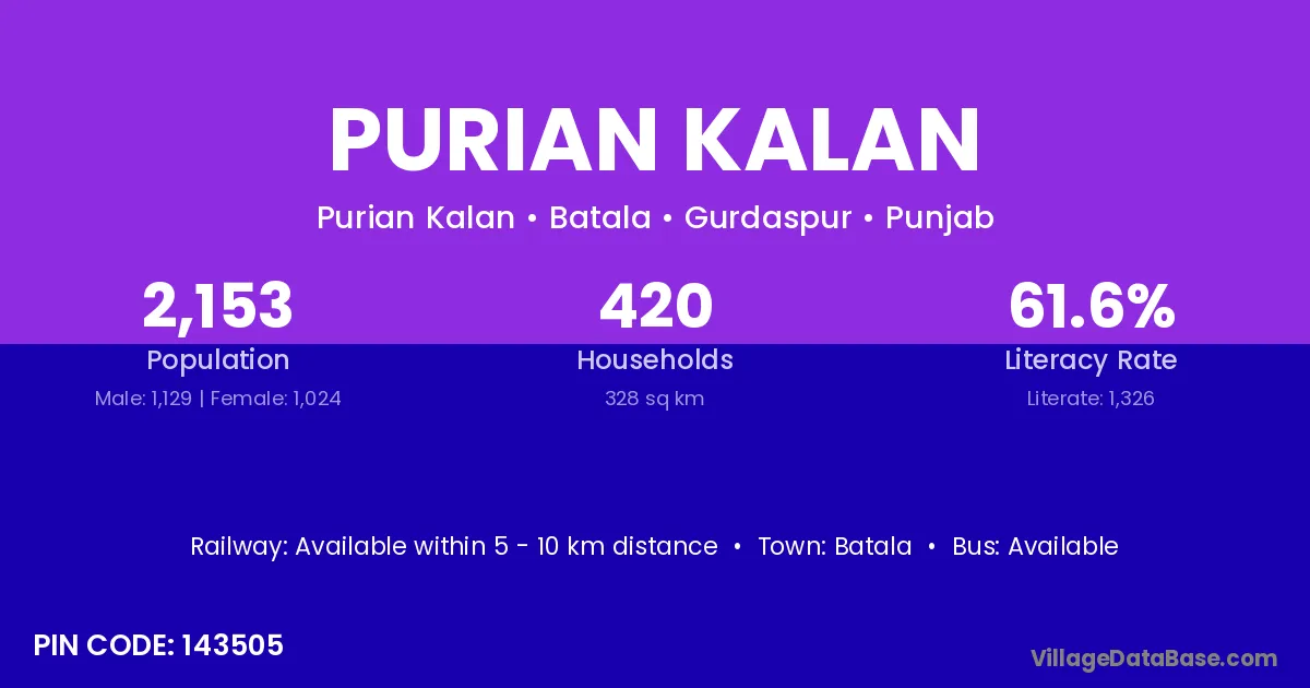 Batala is the nearest town to Purian Kalan village for major economic activities