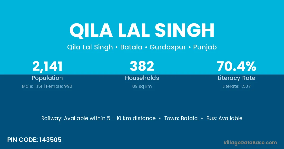 Batala is the nearest town to Qila Lal Singh village for major economic activities