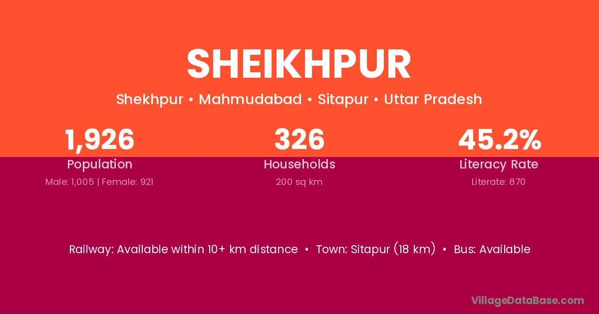 The literacy rate of Sheikhpur village is 64.39%. Male literacy stands at 68.78% and female literacy at 59.58%.