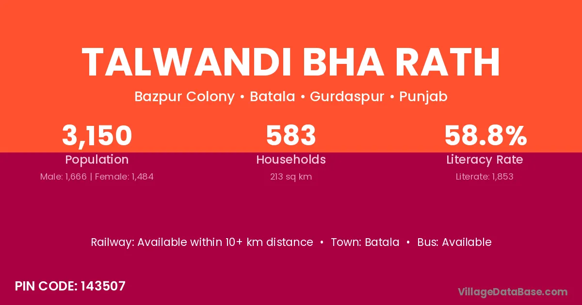 Batala is the nearest town to Talwandi Bha Rath village for major economic activities