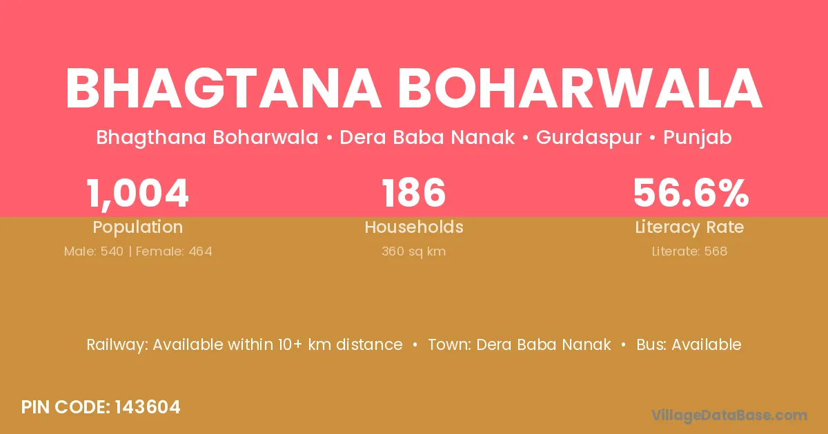 According to Census 2011 information, the village code of Bhagtana Boharwala village is 143604.