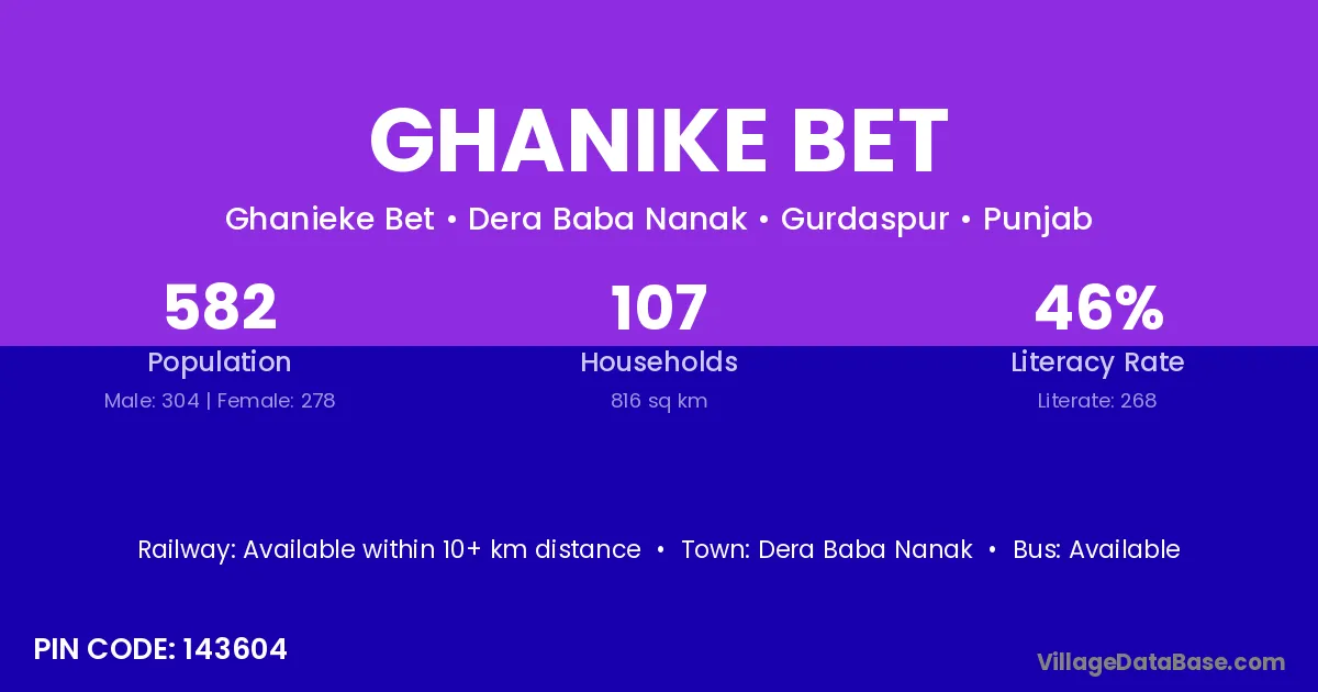 According to Census 2011 information, the village code of Ghanike Bet village is 143604.