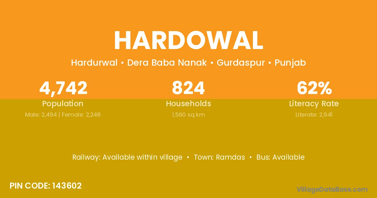 According to Census 2011 information, the village code of Hardowal village is 143602.