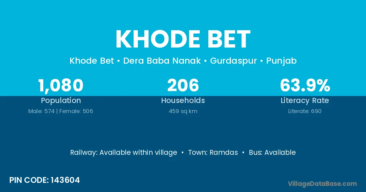 Khode Bet village has a total population of 1,080 people, of which 574 are males and 506 are females.