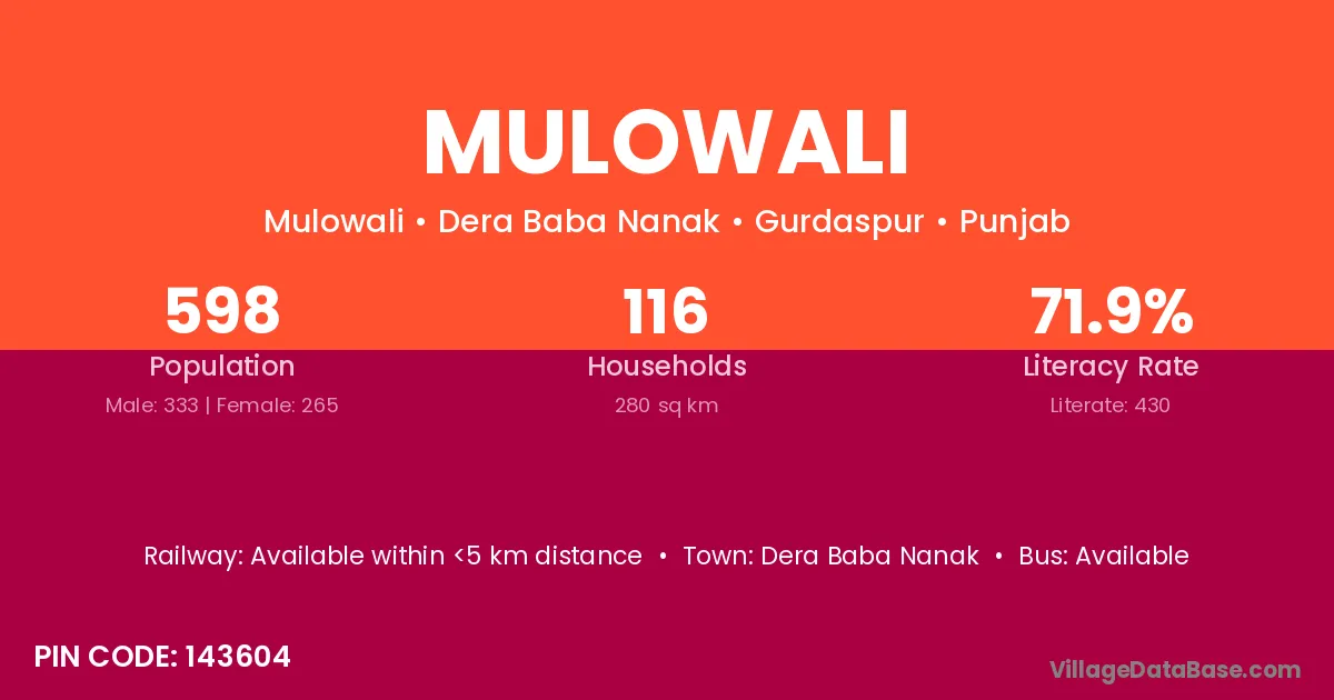 Dera Baba Nanak is the nearest town to Mulowali village for major economic activities
