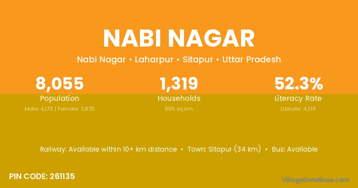 Nabi Nagar village has a total population of 521 people, of which 289 are males and 232 are females.