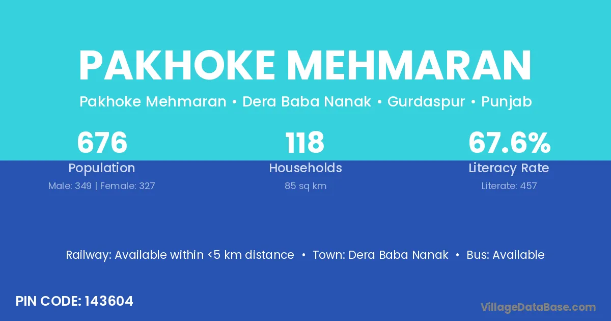 Dera Baba Nanak is the nearest town to Pakhoke Mehmaran village for major economic activities