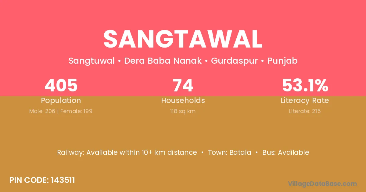According to Census 2011 information, the village code of Sangtawal village is 143511.