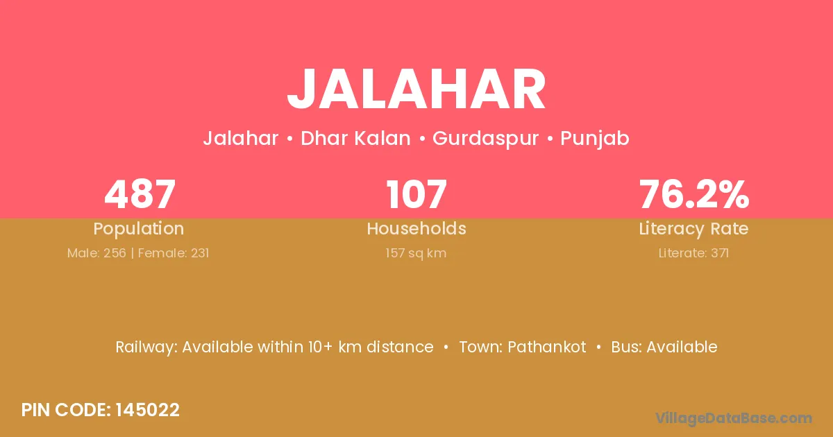Pathankot is the nearest town to Jalahar village for major economic activities