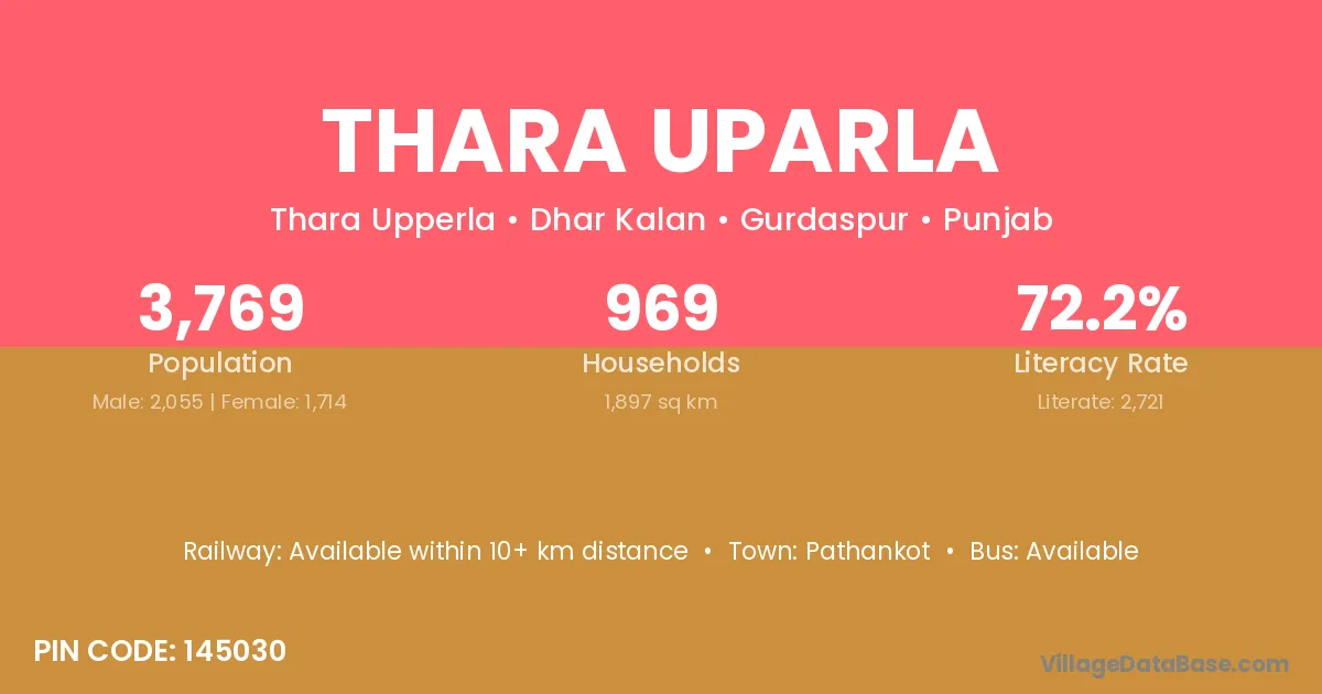 Pathankot is the nearest town to Thara Uparla village for major economic activities