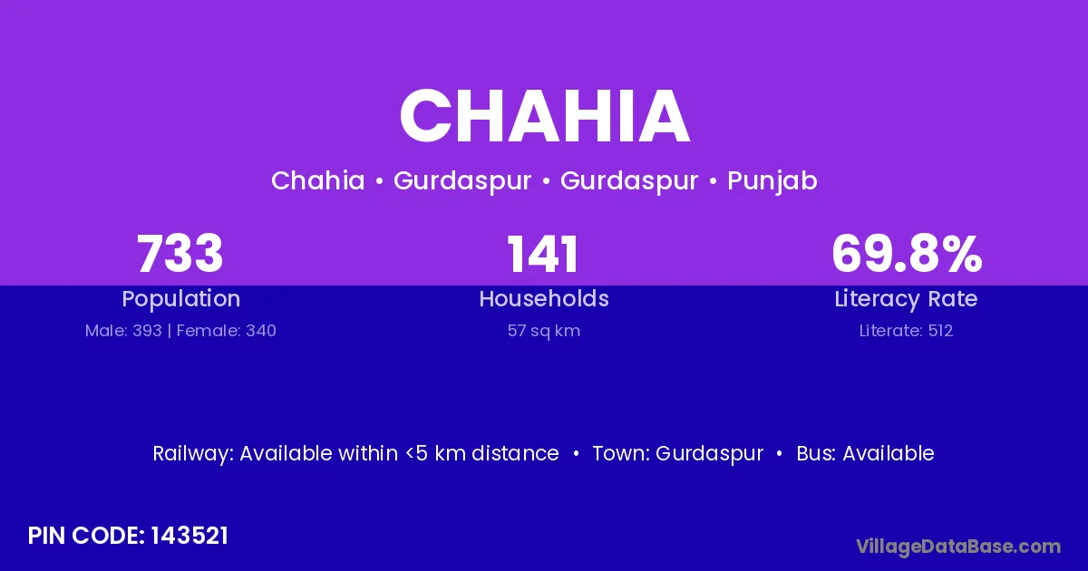Gurdaspur is the nearest town to Chahia village for major economic activities