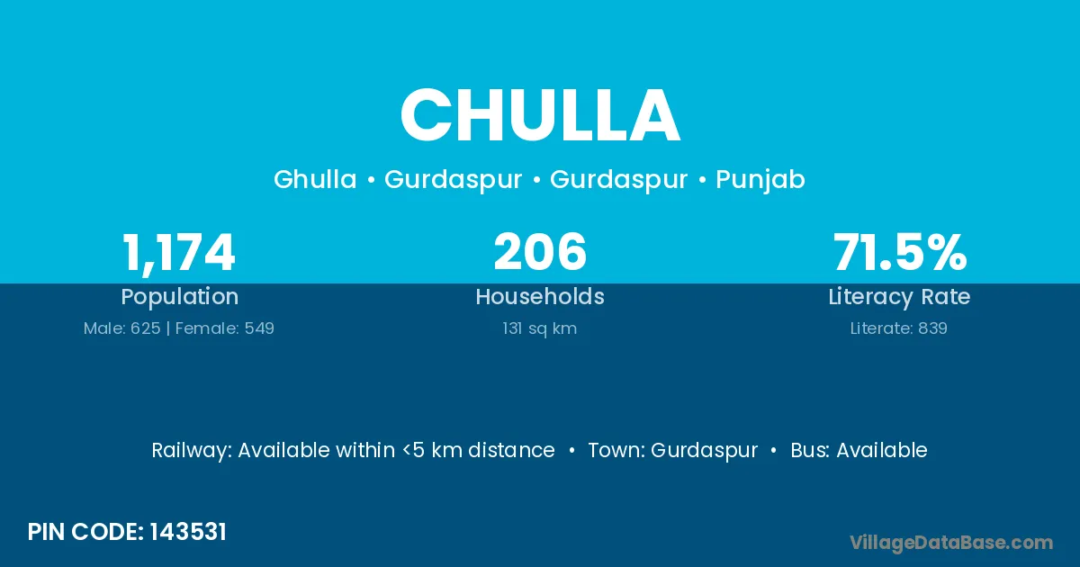 Gurdaspur is the nearest town to Chulla village for major economic activities