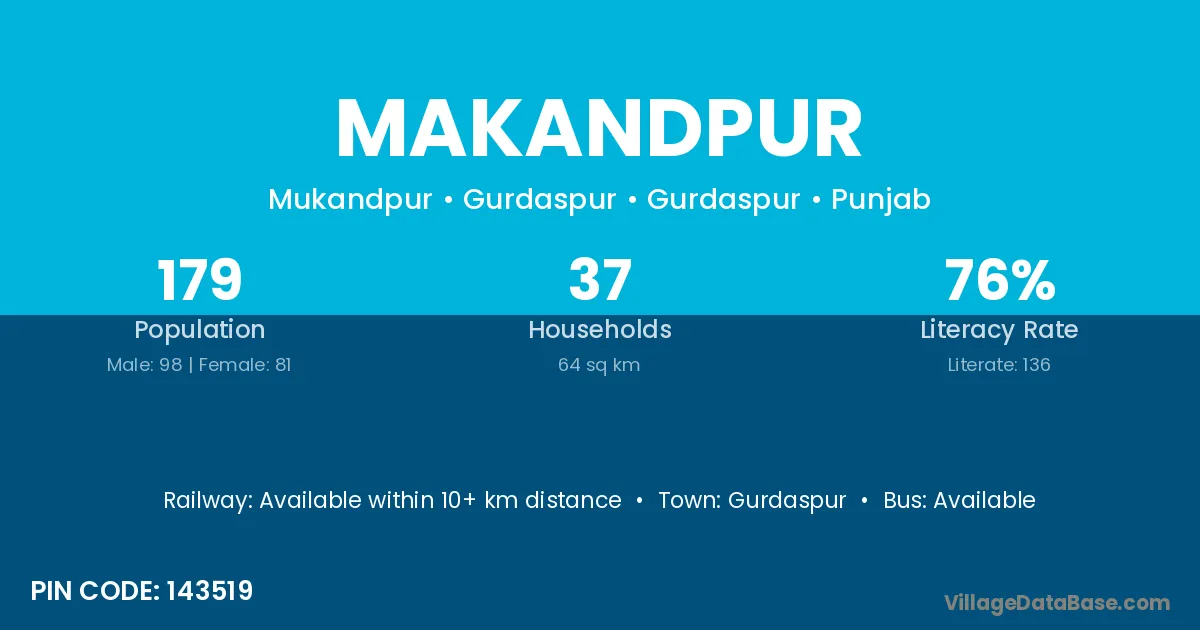 Gurdaspur is the nearest town to Makandpur village for major economic activities