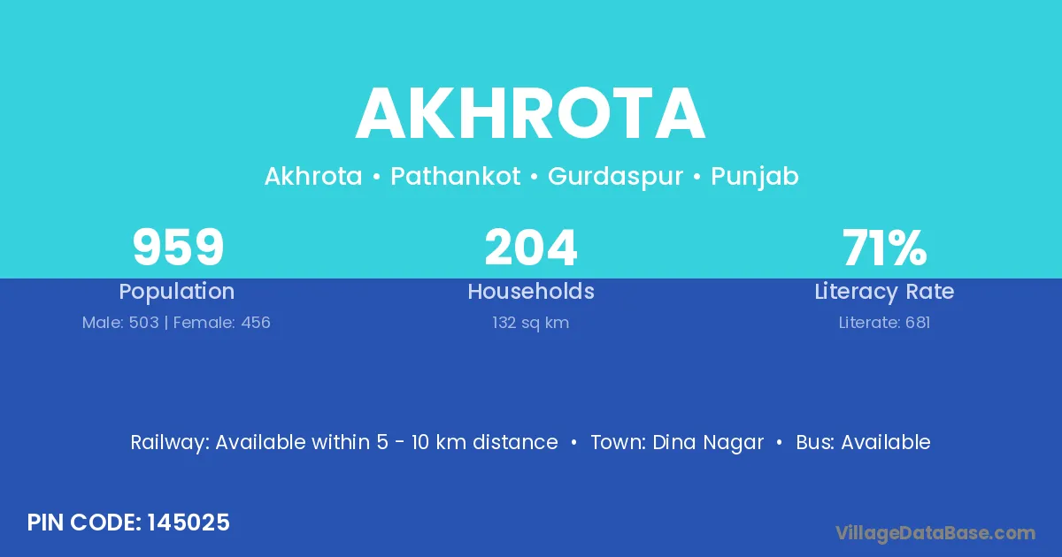 Dina Nagar is the nearest town to Akhrota village for major economic activities
