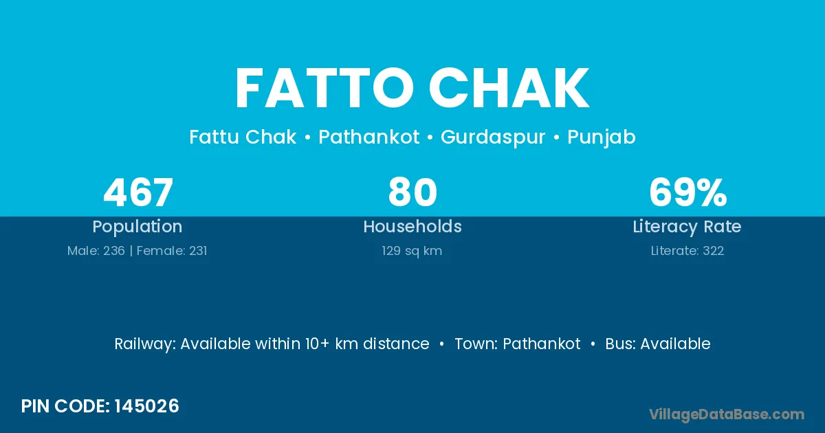 Pathankot is the nearest town to Fatto Chak village for major economic activities