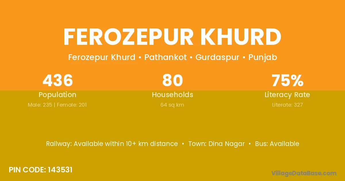 Dina Nagar is the nearest town to Ferozepur Khurd village for major economic activities