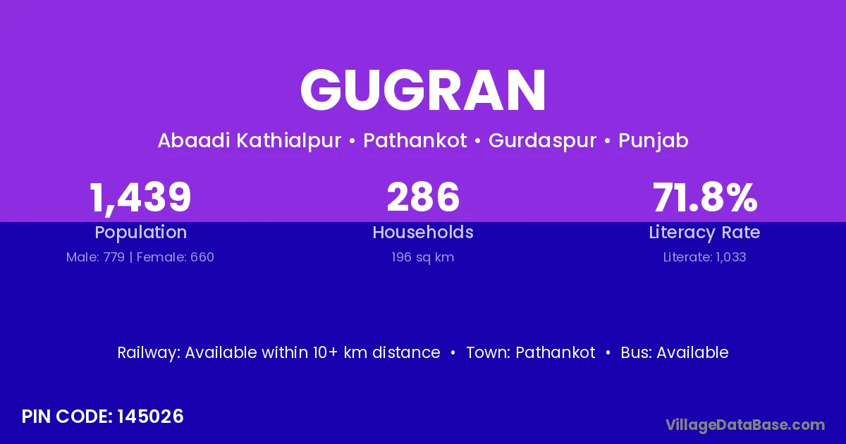 According to Census 2011 information, the village code of Gugran village is 145026.