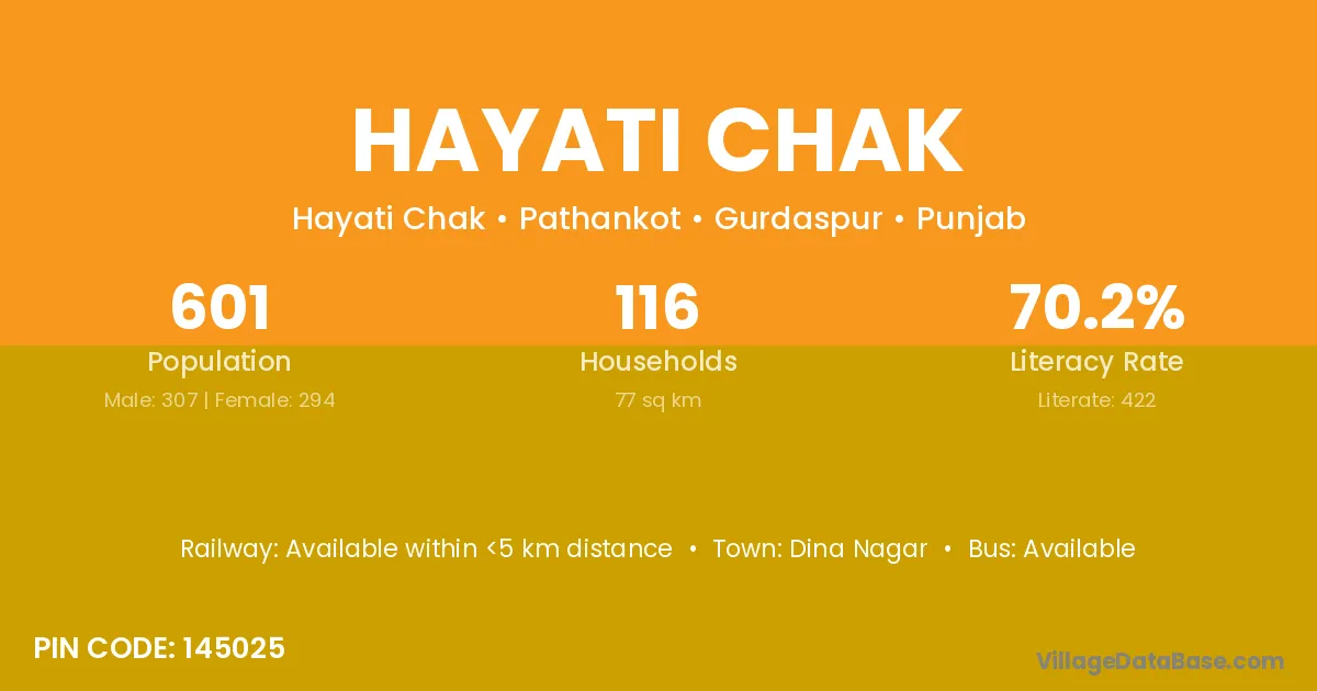 Dina Nagar is the nearest town to Hayati Chak village for major economic activities