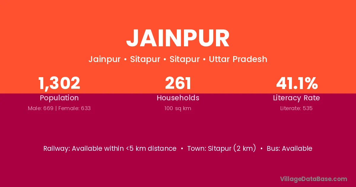 Jainpur village has a total population of 368 people, of which 191 are males and 177 are females.