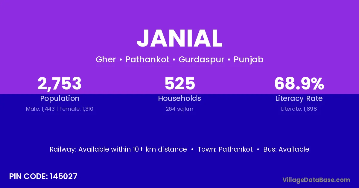 Janial village has a total population of 2,753 people, of which 1,443 are males and 1,310 are females.