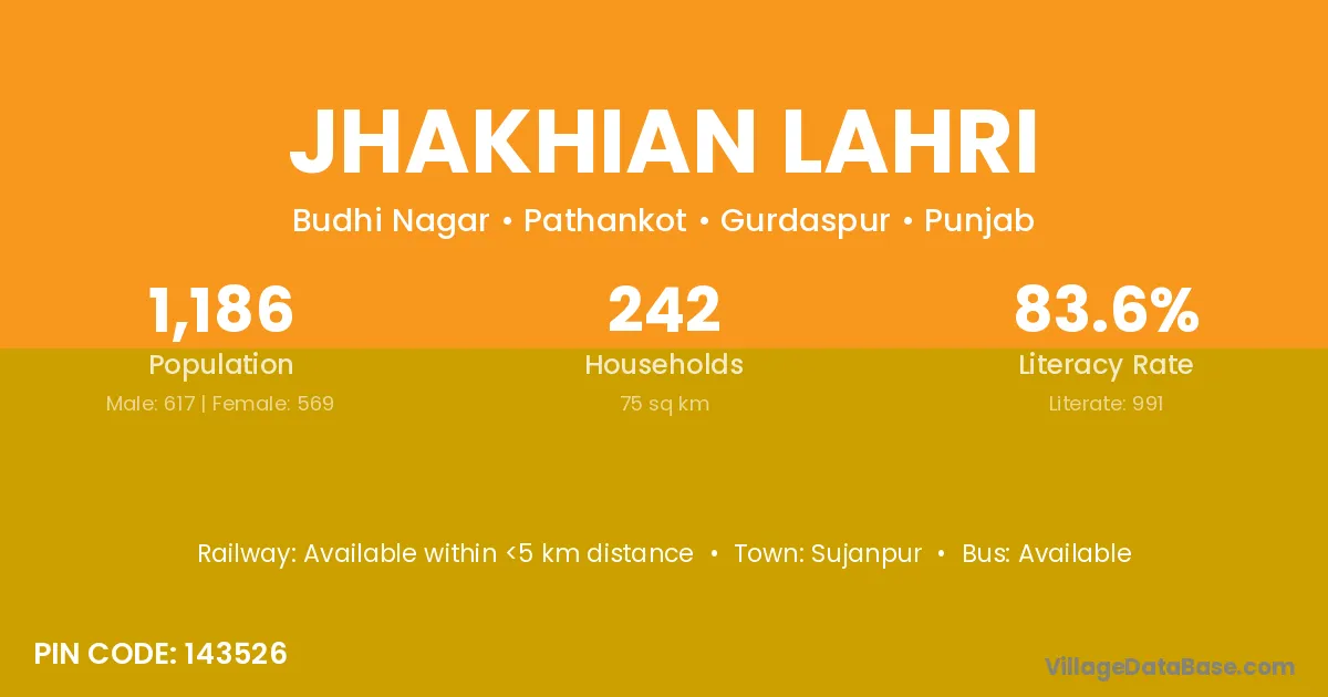 Sujanpur is the nearest town to Jhakhian Lahri village for major economic activities