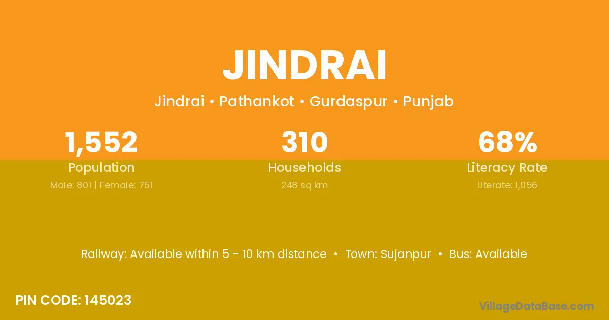 Sujanpur is the nearest town to Jindrai village for major economic activities